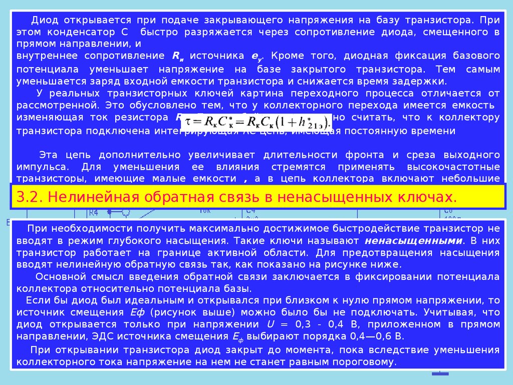 Схемы ненасыщенного ключа с нелинейной обратной связью