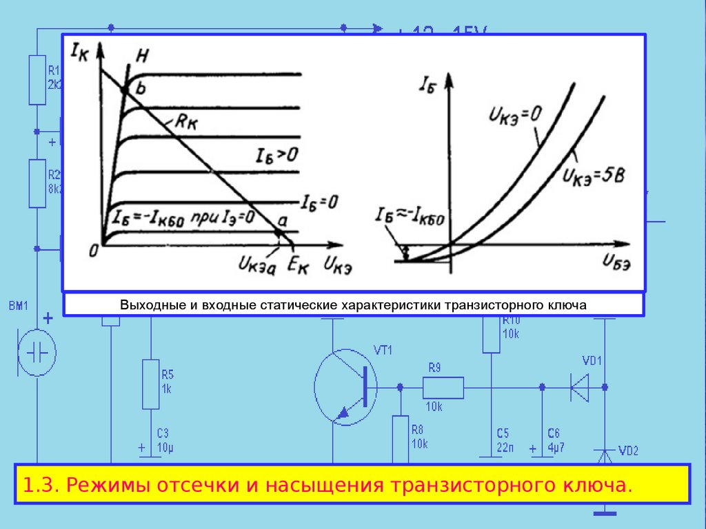 Выходные и входные статические характеристики транзисторного ключа1.3. Режимы отсечки и насыщения транзисторного ключа.