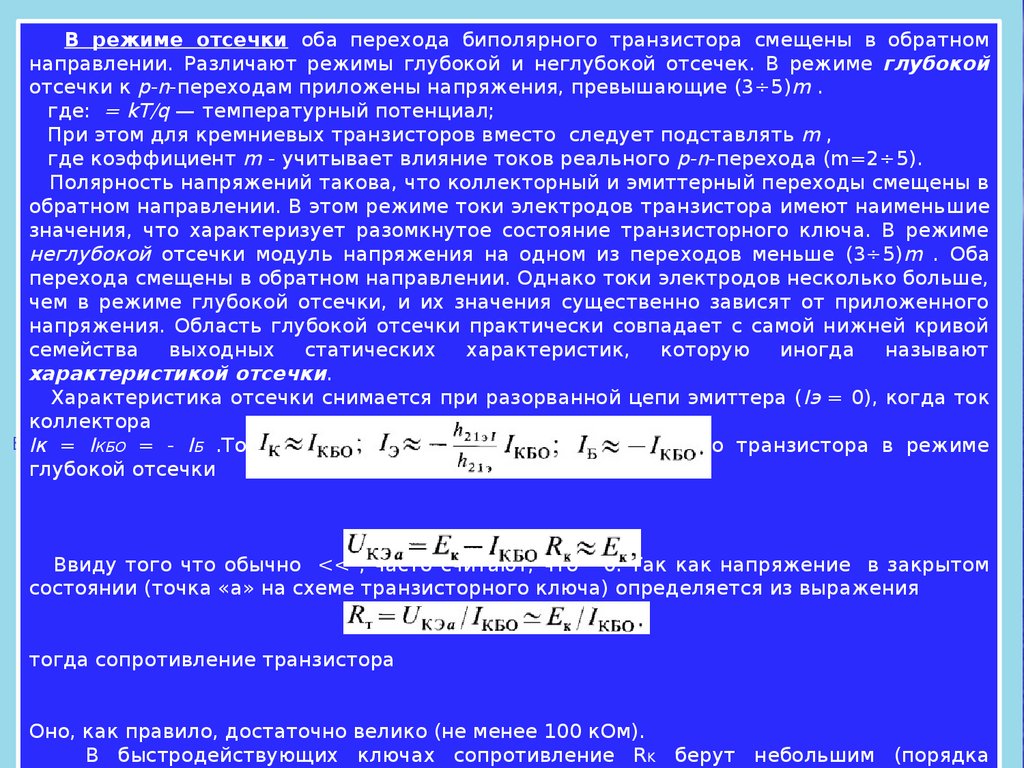 неглубокой отсечки модуль напряжения на одном из переходов меньше (3÷5)m . Оба