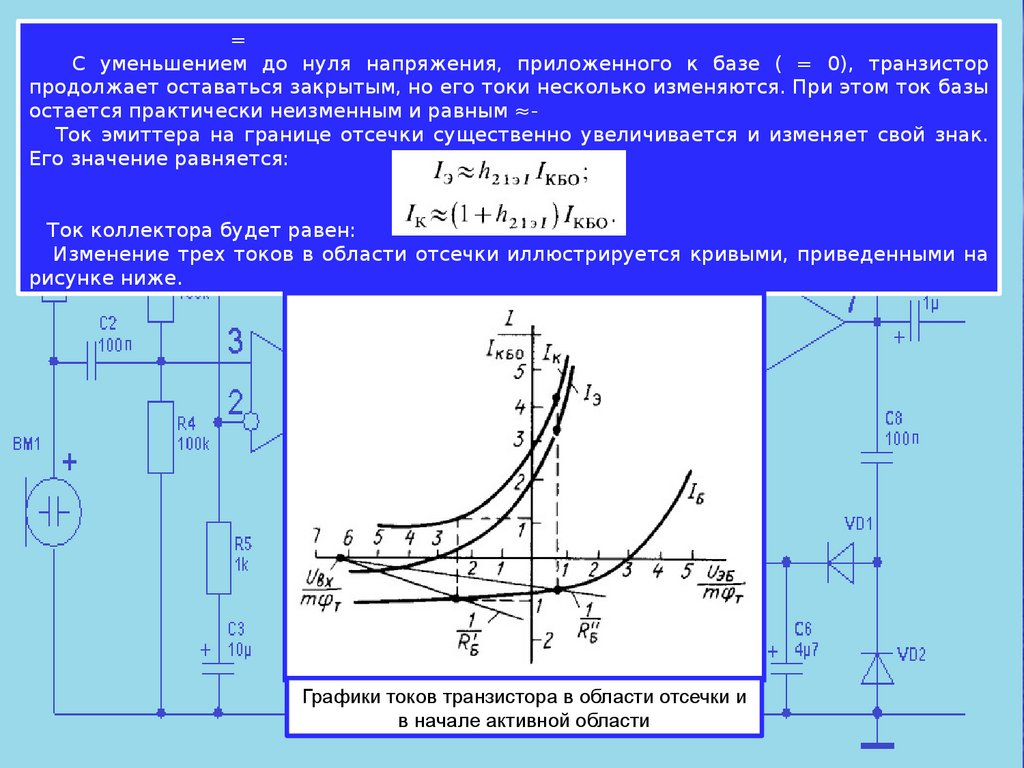 Изменение трех токов в области отсечки иллюстрируется кривыми, приведенными на
