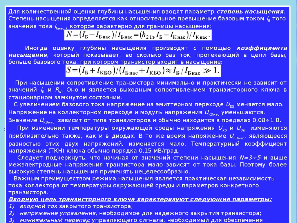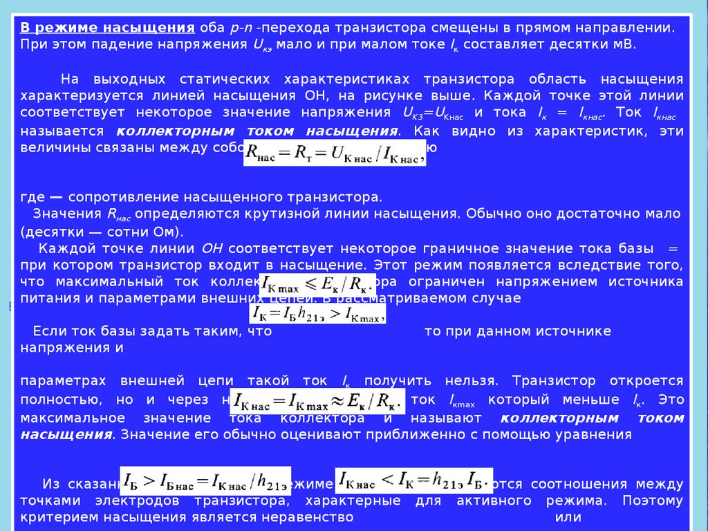 (транзистор закрыт), и замкнутое, которое характеризуется режимом насыщения