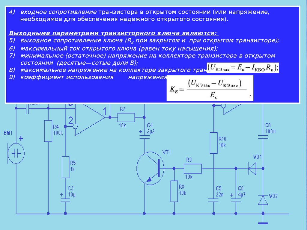 В зависимости от целевого назначения транзисторного ключа и особенностей его