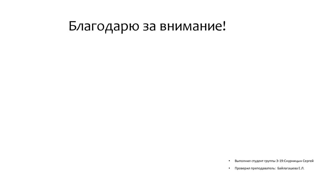 Благодарю за внимание!Выполнил студент группы Э-19:Снурницын Сергей