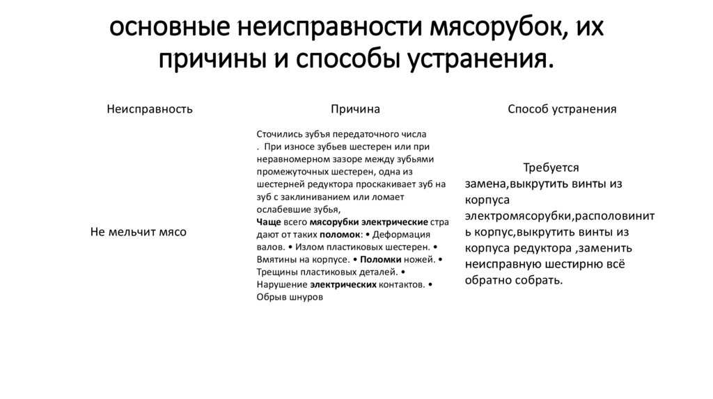 основные неисправности мясорубок, ихпричины и способы устранения.