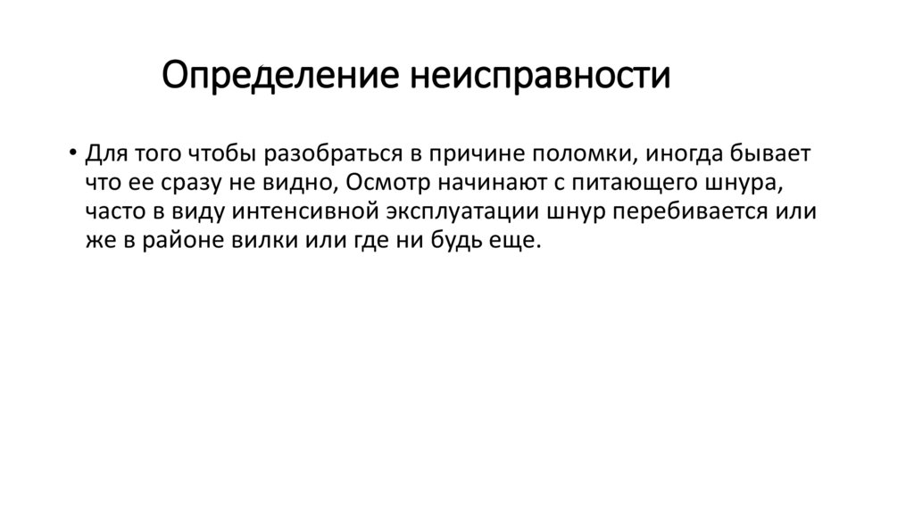Определение неисправности• Для того чтобы разобраться в причине поломки, иногда бывает