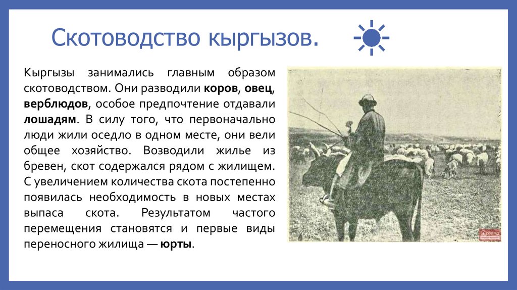 Скотоводство кыргызов.Кыргызы занимались главным образом