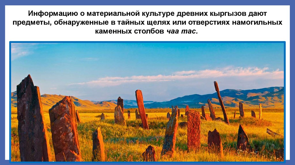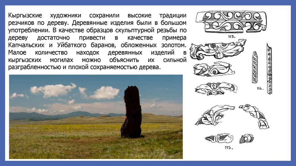 Кроме изготовления изваяний и резьбынадписей по камню, кыргызы искусно вырезали