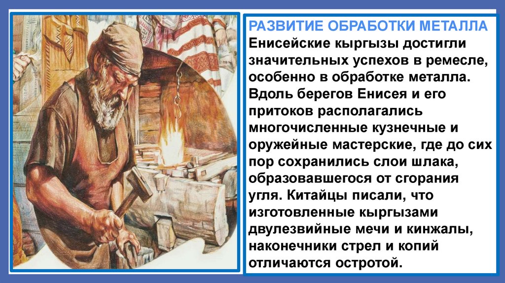 РАЗВИТИЕ ОБРАБОТКИ МЕТАЛЛАЕнисейские кыргызы достигли
