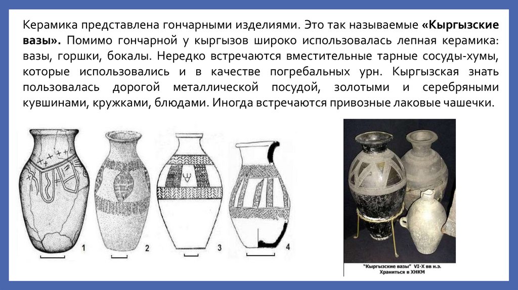 которые использовались и в качестве погребальных урн. Кыргызская знать