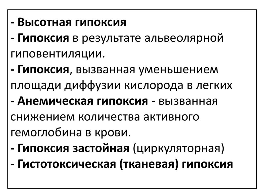 - Высотная гипоксия- Гипоксия в результате альвеолярной