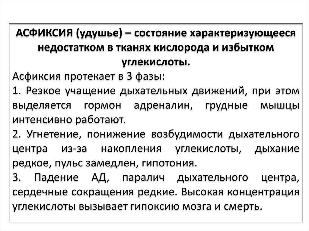 АСФИКСИЯ (удушье) – состояние характеризующеесянедостатком в тканях кислорода и избытком