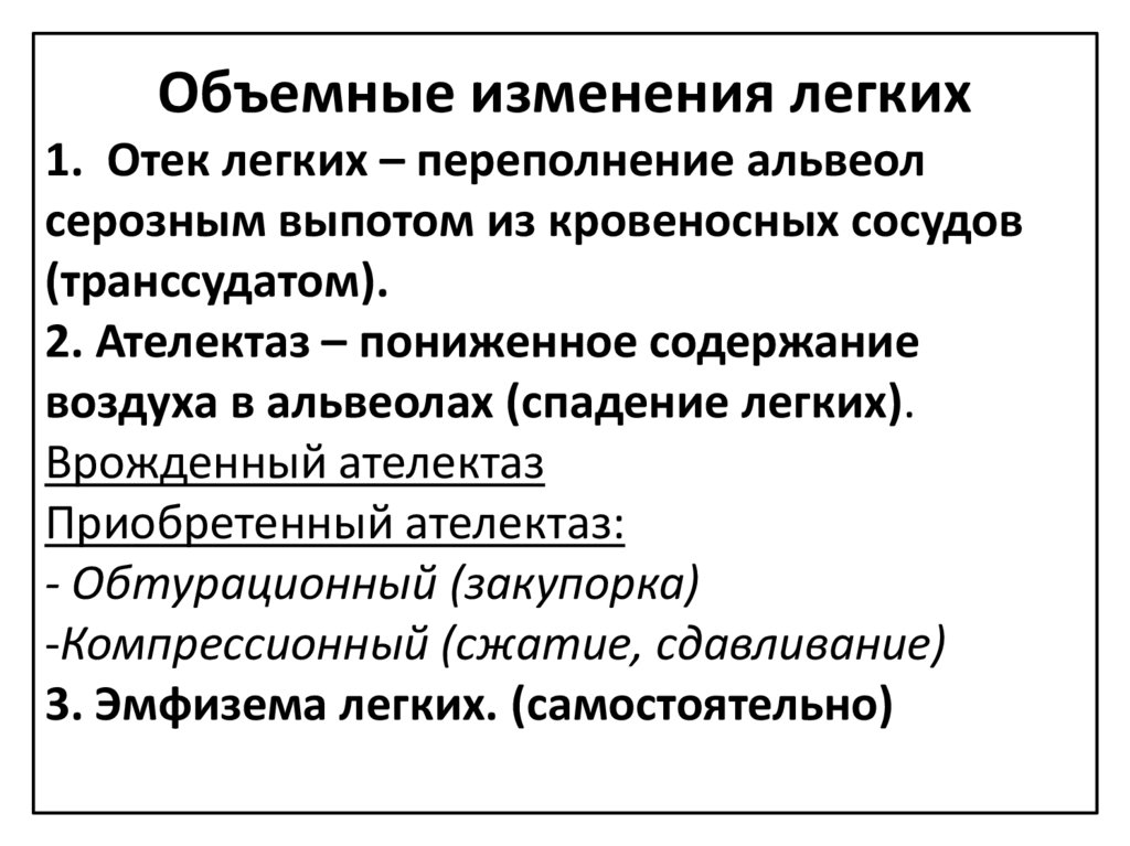 Объемные изменения легких1. Отек легких – переполнение альвеол