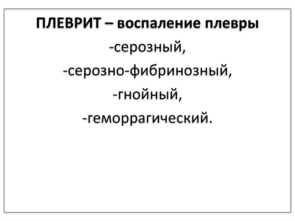 ПЛЕВРИТ – воспаление плевры-серозный,