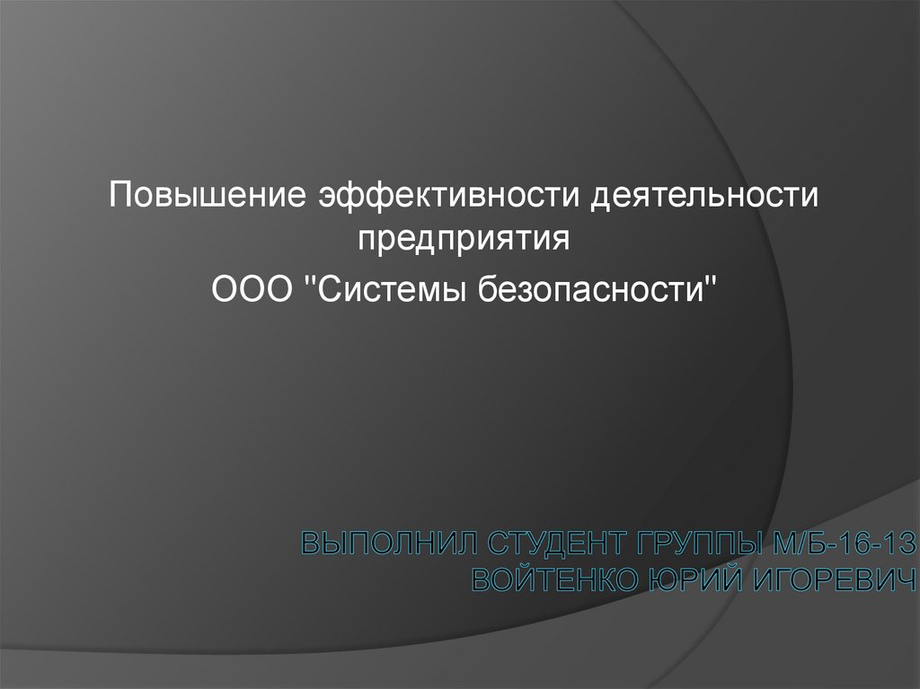 Повышение эффективности деятельности предприятия ООО "Системы безопасности"