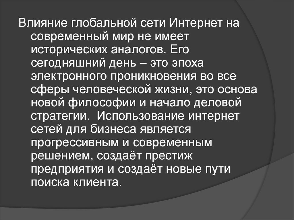Влияние глобальной сети Интернет насовременный мир не имеет