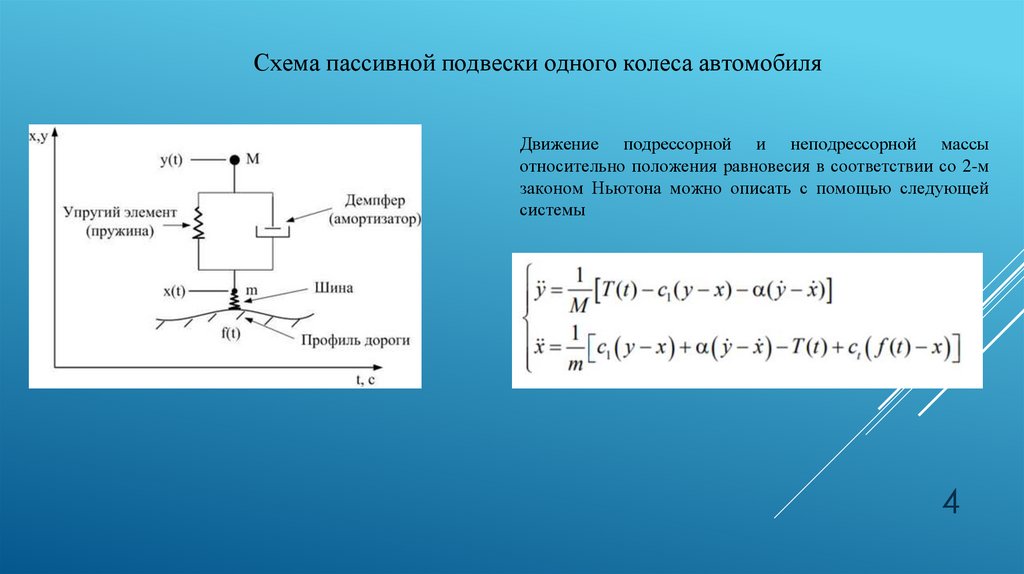 Схема пассивной подвески одного колеса автомобиляДвижение подрессорной и неподрессорной массы