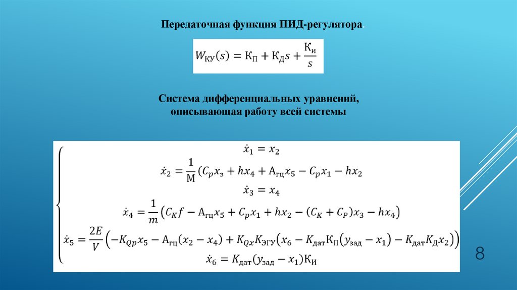 Передаточная функция ПИД-регулятора.Система дифференциальных уравнений,