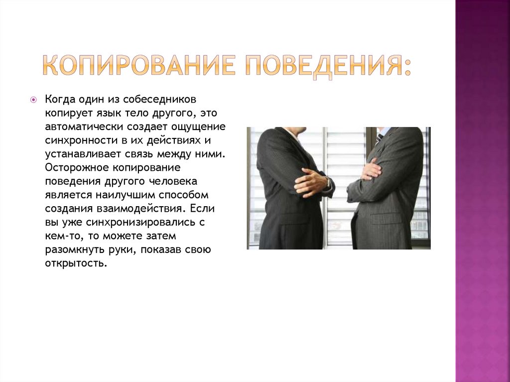 Когда один из собеседниковкопирует язык тело другого, это