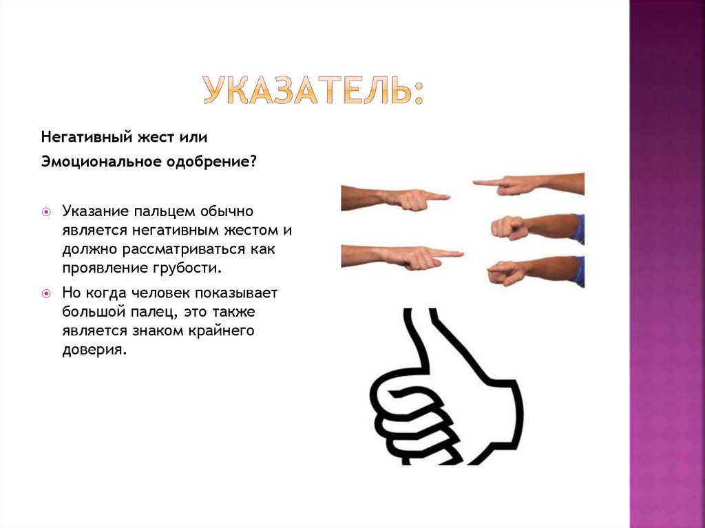 Указание пальцем обычно
