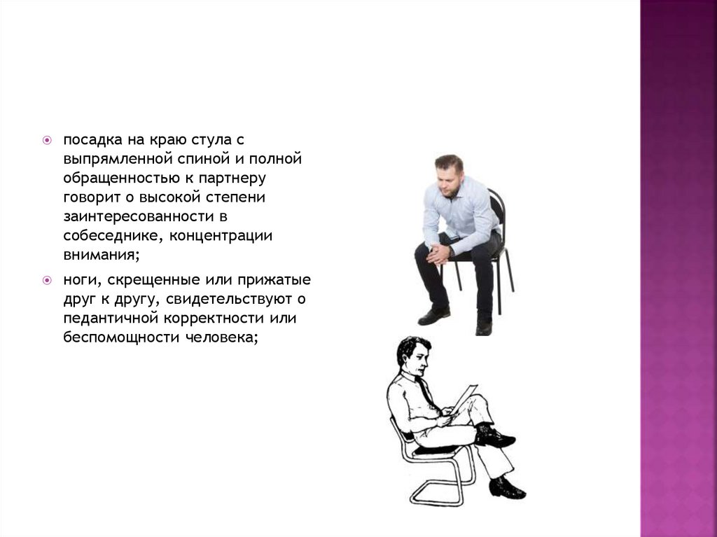 посадка на краю стула свыпрямленной спиной и полной