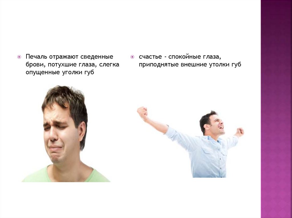 Печаль отражают сведенныеброви, потухшие глаза, слегка