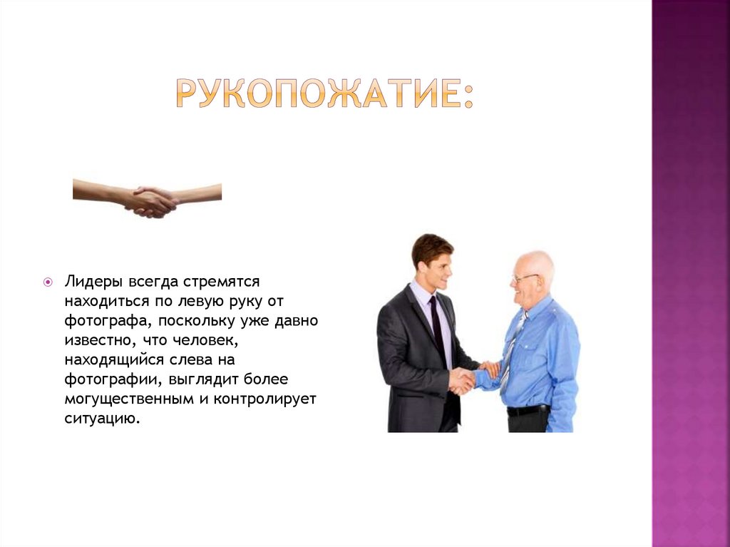 Лидеры всегда стремятсянаходиться по левую руку от