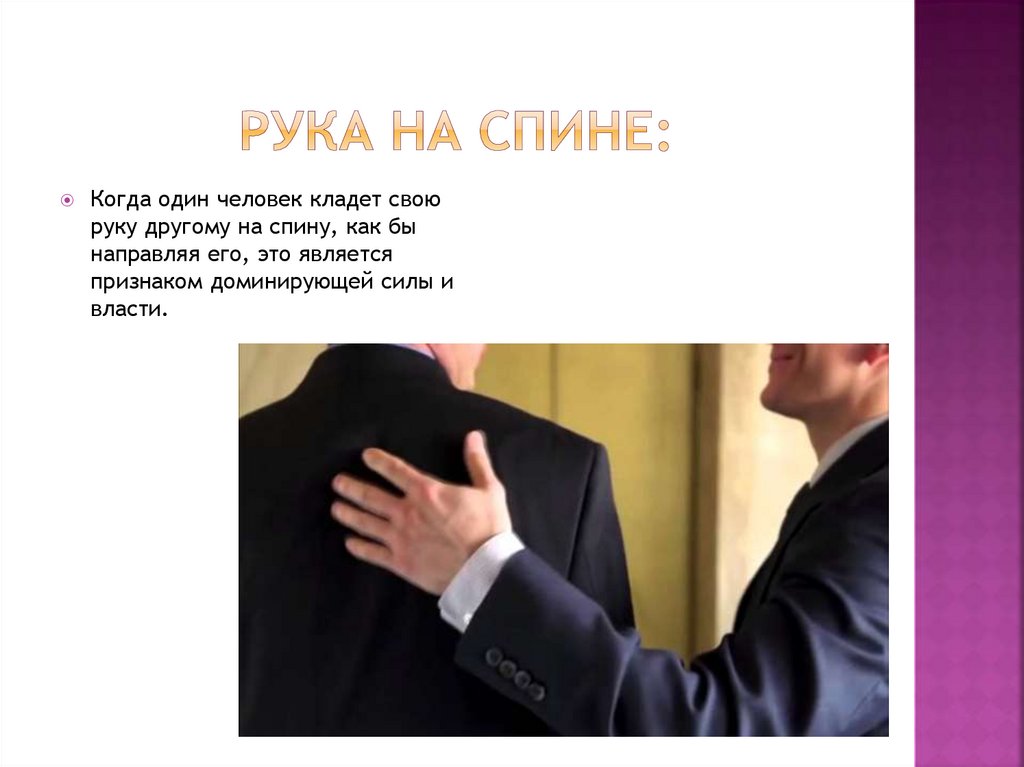 Когда один человек кладет своюруку другому на спину, как бы