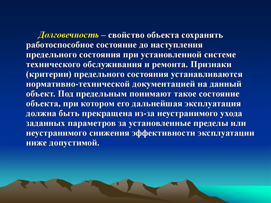 Долговечность – свойство объекта сохранятьработоспособное состояние до наступления