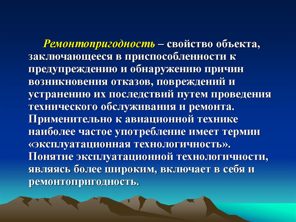 Ремонтопригодность – свойство объекта,заключающееся в приспособленности к