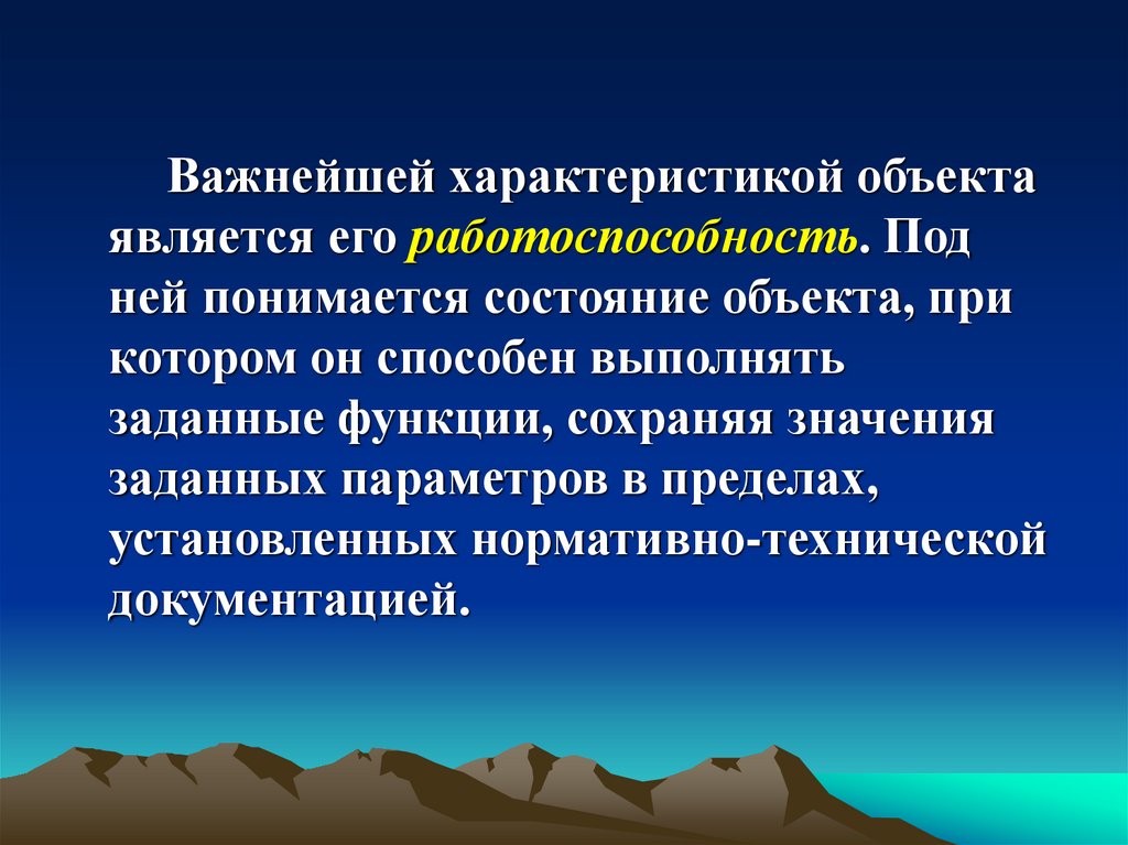 Важнейшей характеристикой объектаявляется его работоспособность. Под