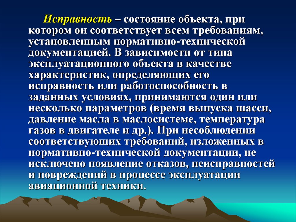 Исправность – состояние объекта, прикотором он соответствует всем требованиям,