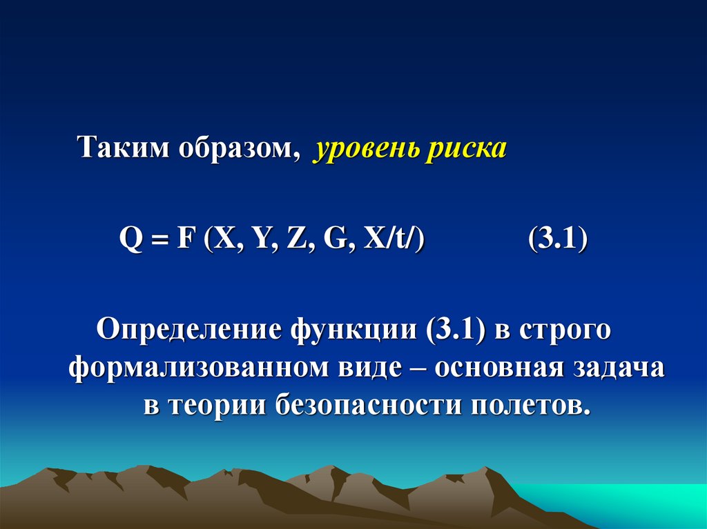 Таким образом, уровень рискаQ = F (X, Y, Z, G, X/t/)