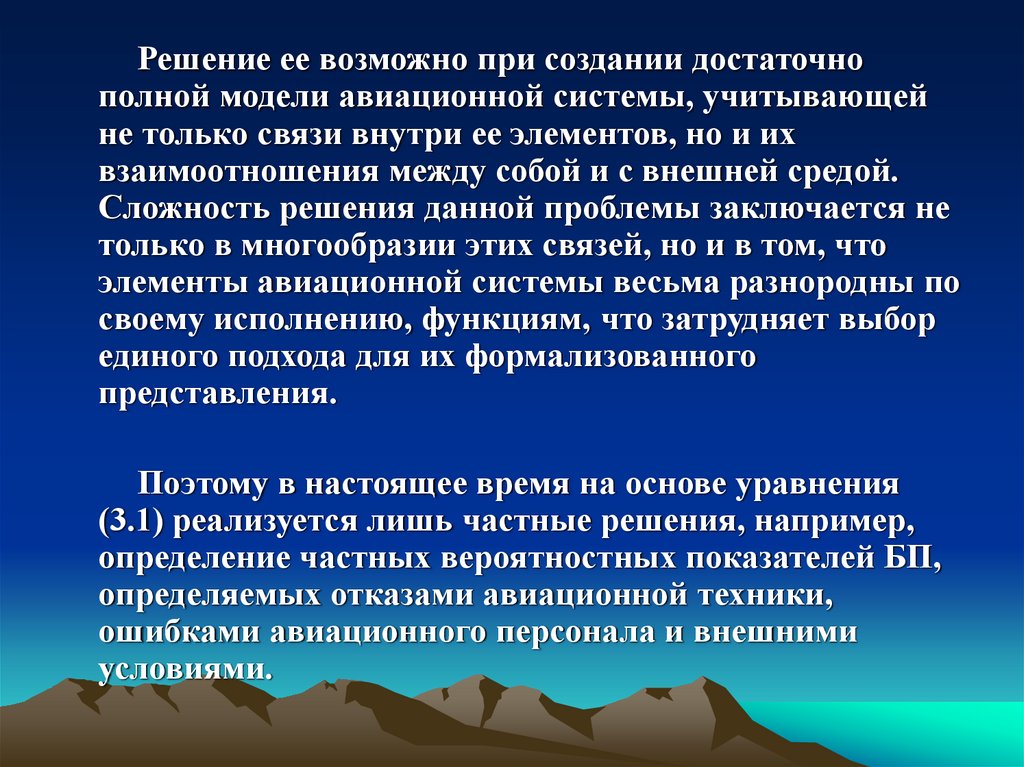 Решение ее возможно при создании достаточнополной модели авиационной системы, учитывающей