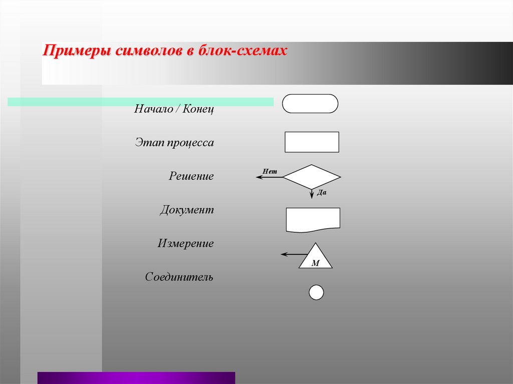Примеры символов в блок-схемах