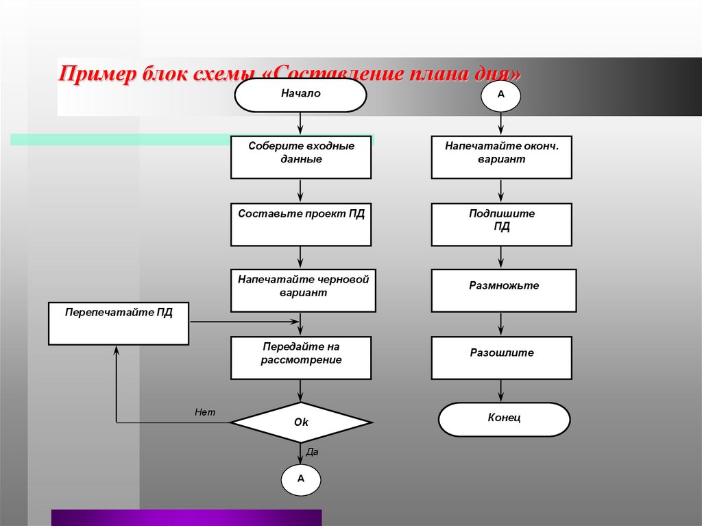 Пример блок схемы «Составление плана дня»Начало