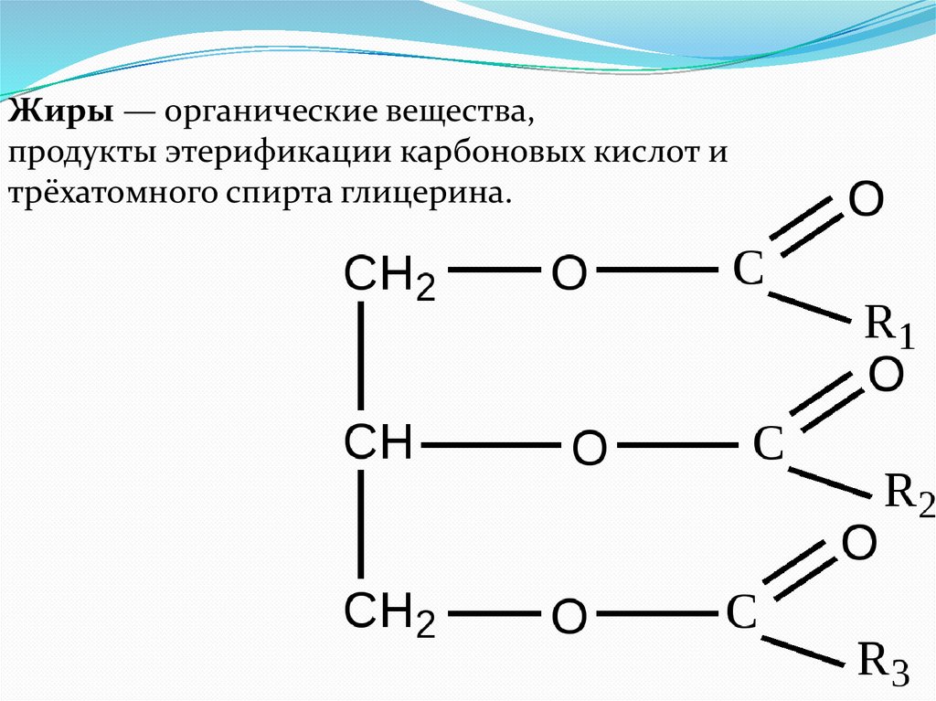 Жиры — органические вещества,продукты этерификации карбоновых кислот и