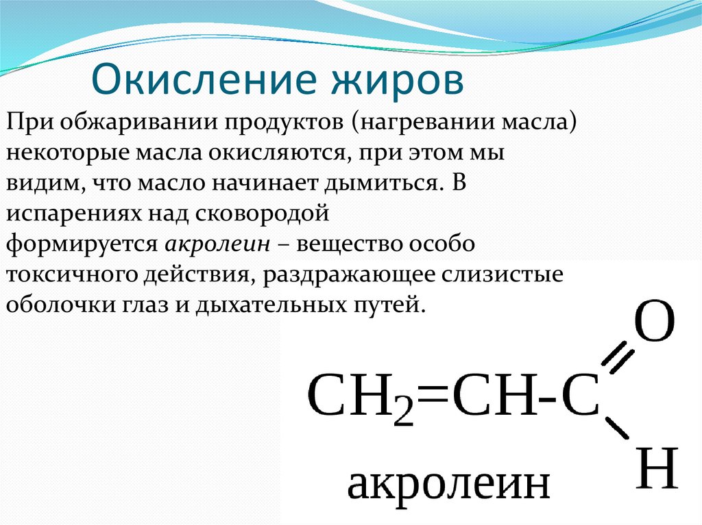 Окисление жировПри обжаривании продуктов (нагревании масла)