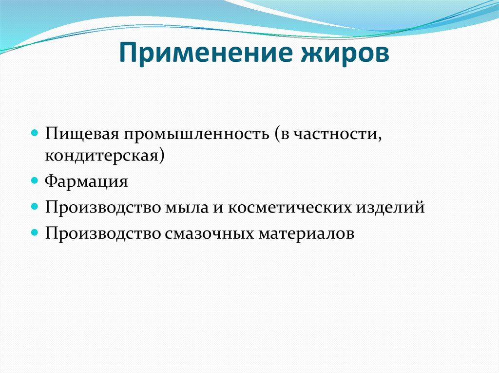 Применение жировПищевая промышленность (в частности,