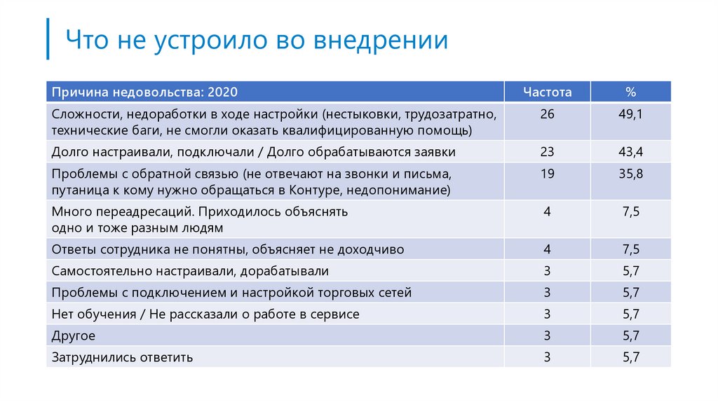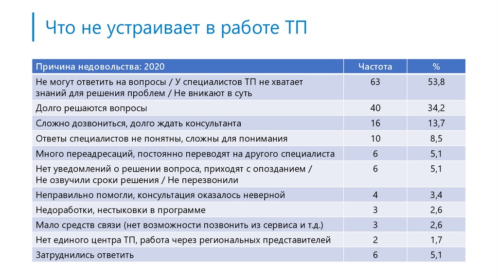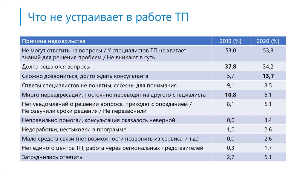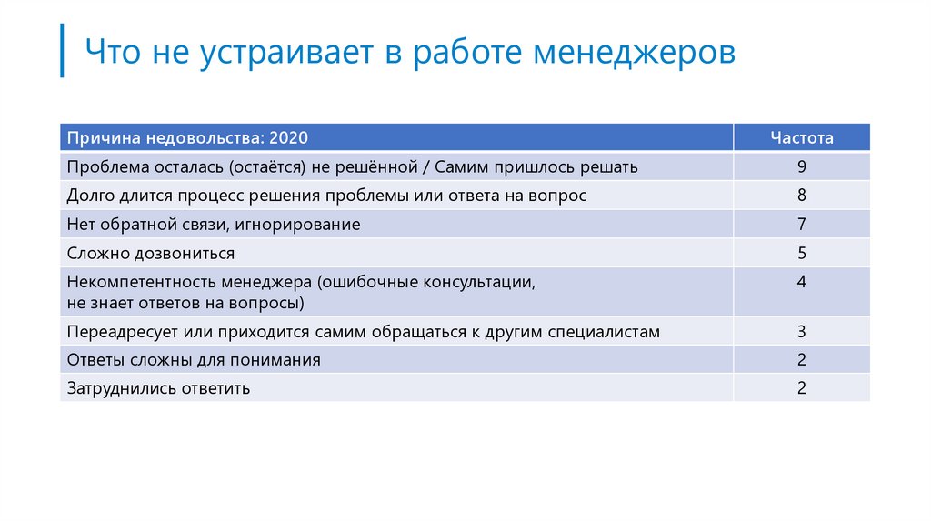 Что не устраивает в работе менеджеровПричина недовольства: 2020