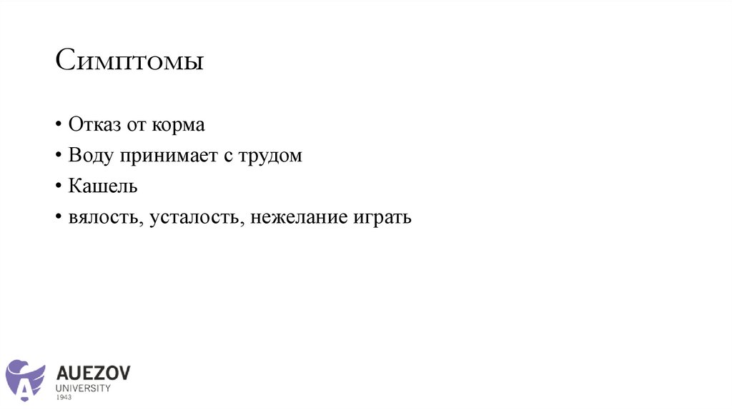 Симптомы• Отказ от корма