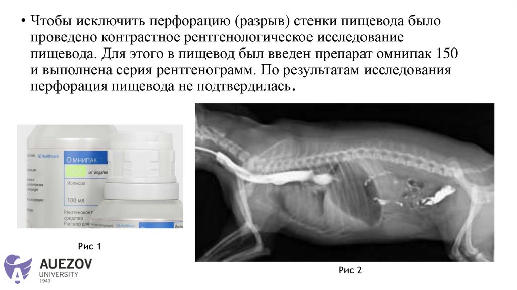 пищевода. Для этого в пищевод был введен препарат омнипак 150
