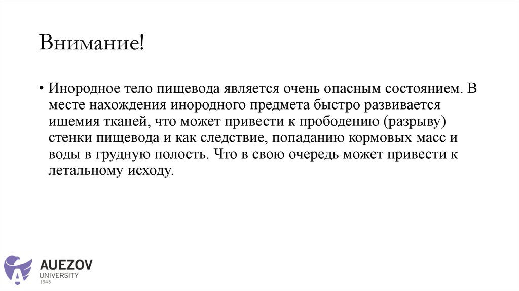 Внимание!• Инородное тело пищевода является очень опасным состоянием. В