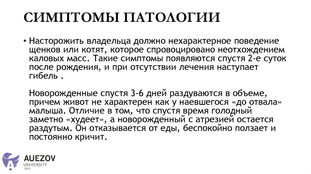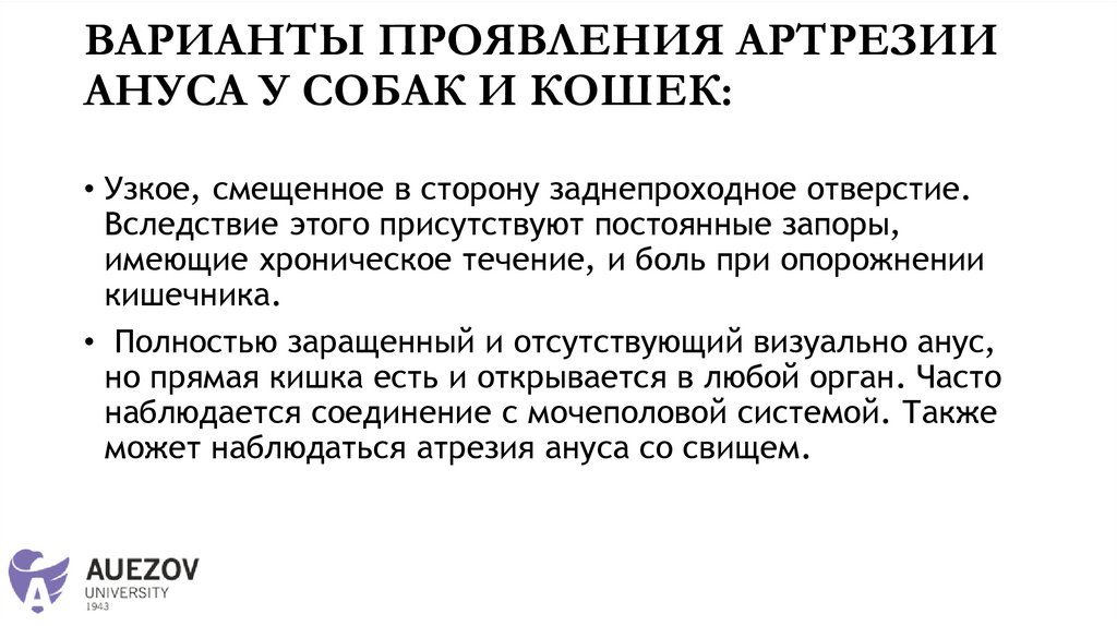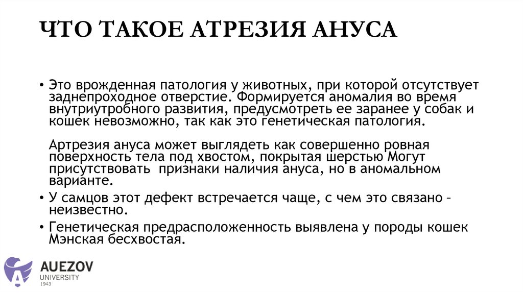 ЧТО ТАКОЕ АТРЕЗИЯ АНУСА• Это врожденная патология у животных, при которой отсутствует