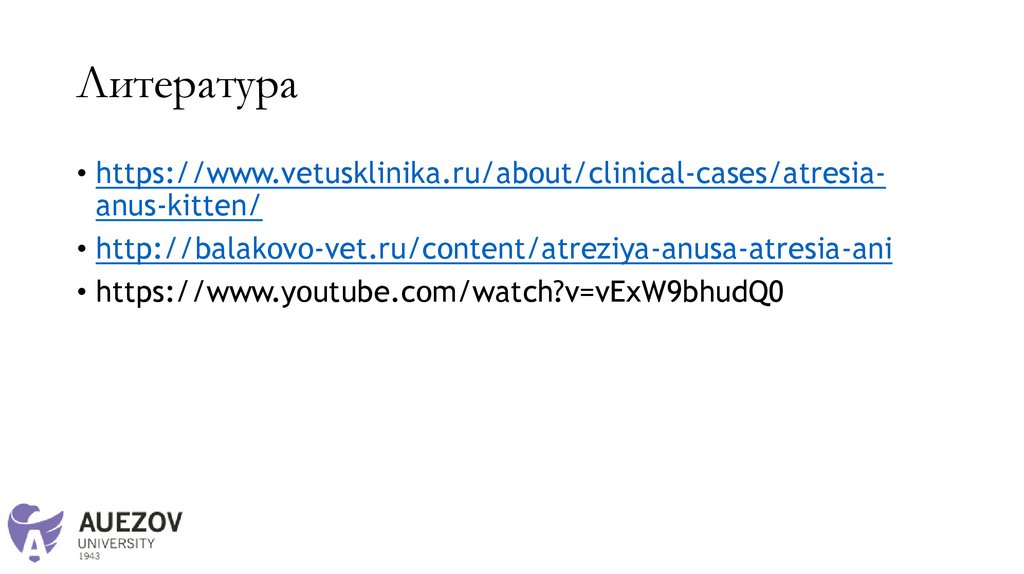Литература• https://www.vetusklinika.ru/about/clinical-cases/atresiaanus-kitten/