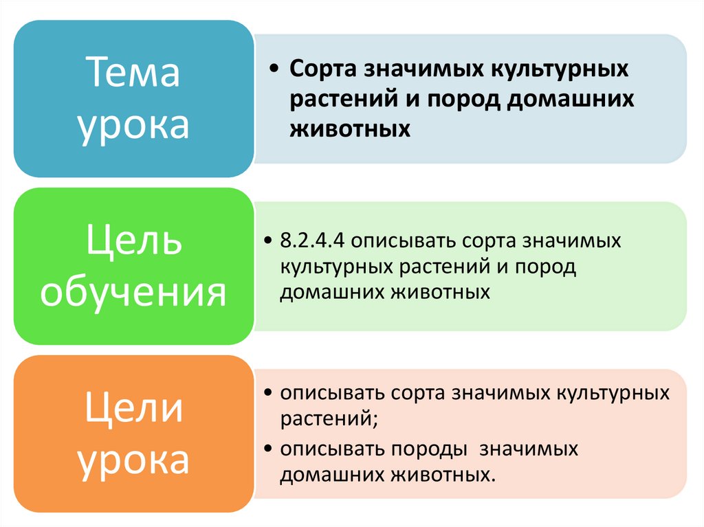 Назовите породы домашних животных и сортакультурных растений , встречающихся на