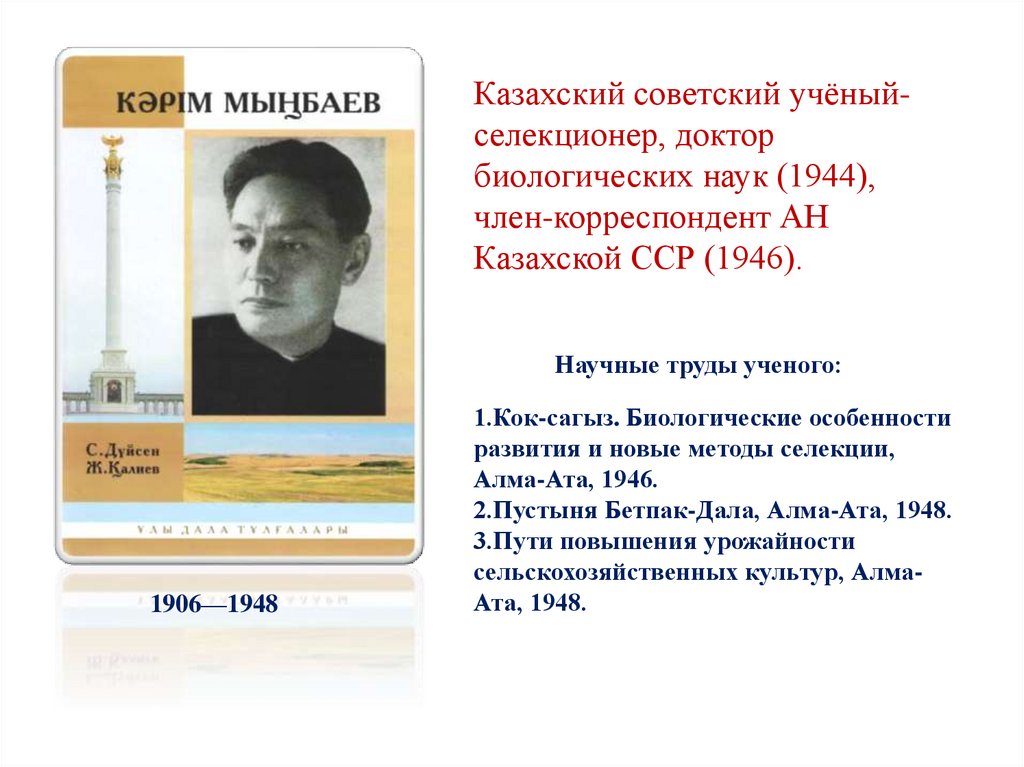 Казахский советский учёныйселекционер, докторбиологических наук (1944),