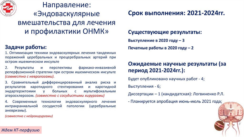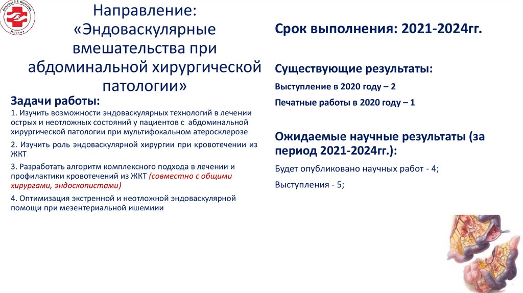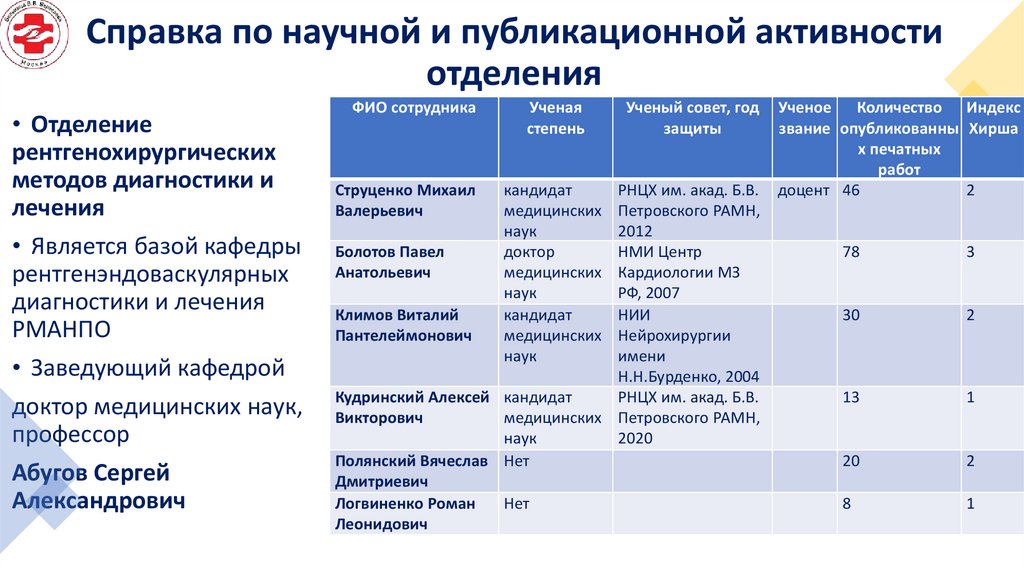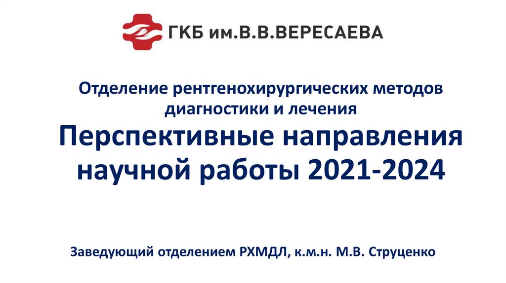 Отделение рентгенохирургических методов диагностики и лечения. Перспективные направления научной работы