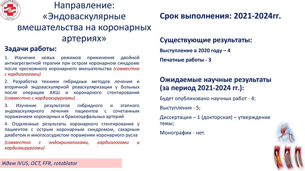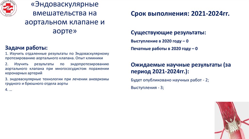 1. Изучить возможности эндоваскулярных технологий в лечении