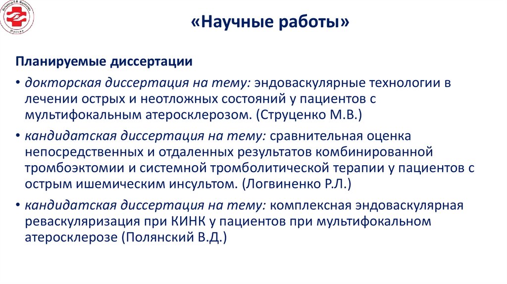 «Научные работы»Планируемые диссертации