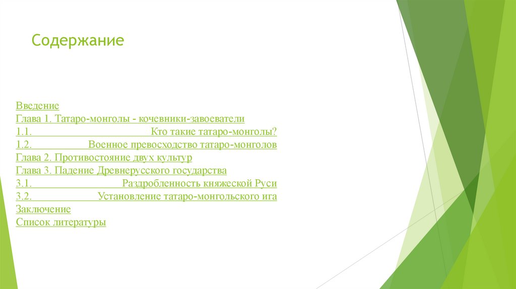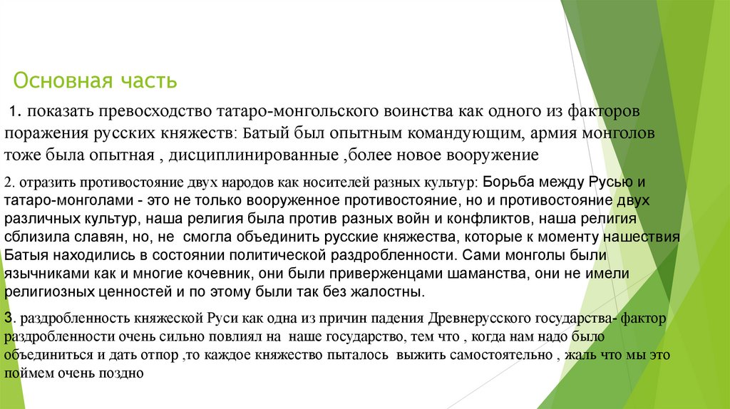 Основная часть1. показать превосходство татаро-монгольского воинства как одного из факторов